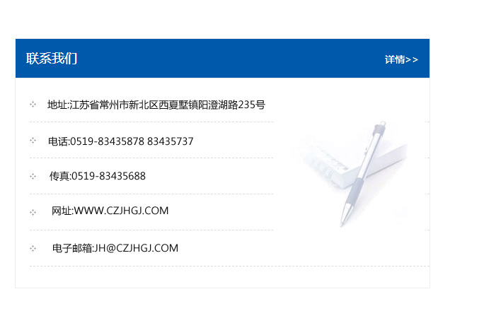 傳真:0519-83435688    郵編:213135    網址:WWW.czjhgj_com.hsmsmk.com    電子郵箱:JH@czjhgj_com.hsmsmk.com